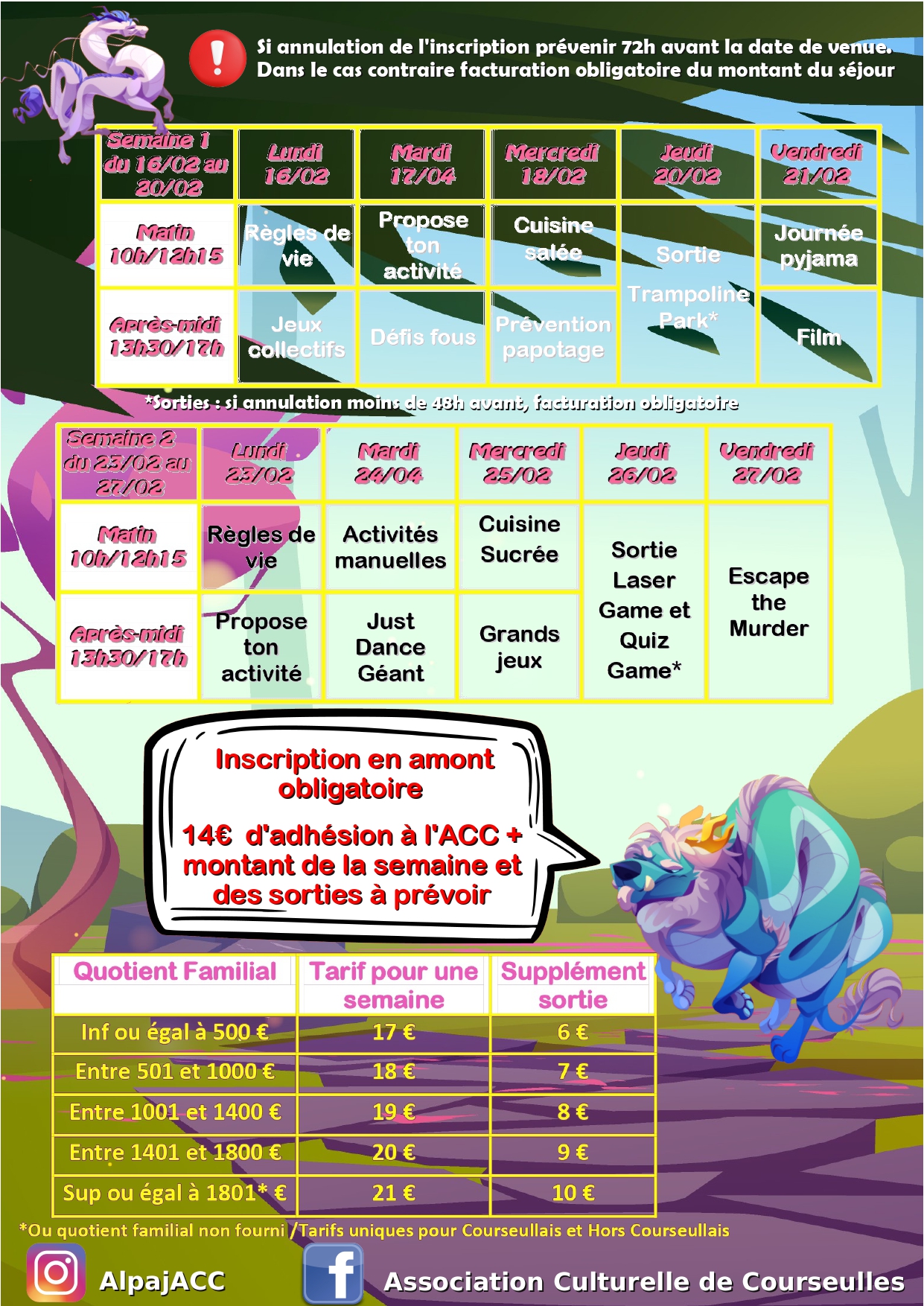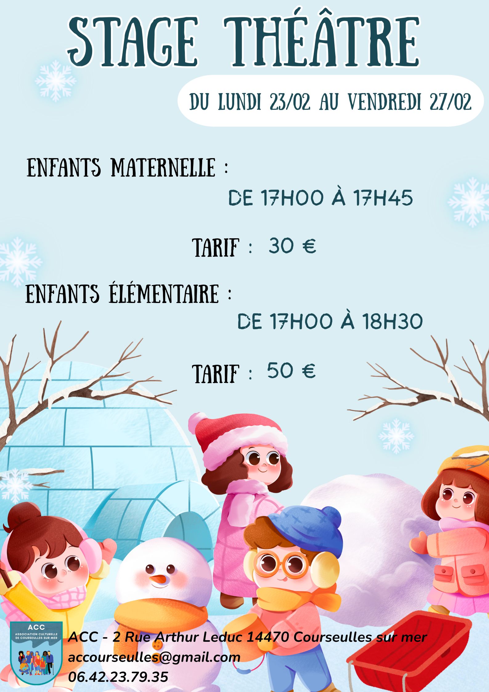 Stages durant les vacances d’Hiver :